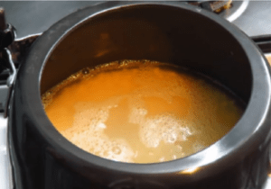 • Once the dal is soaked, drain the water and transfer it to a pressure cooker. Add enough water to cover the dal and a pinch of salt. Pressure cook the dal for about 3-4 whistles or until it turns soft and mushy.