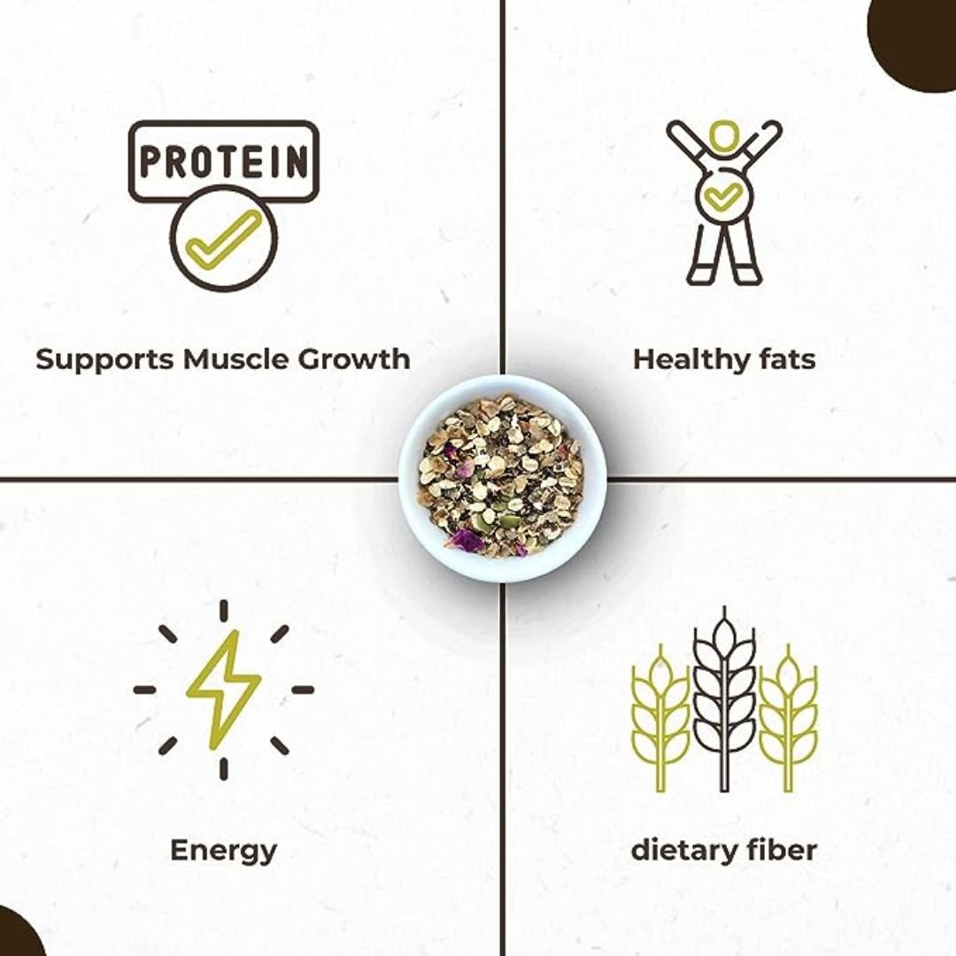 - Protein and Healthy Fats: Nuts and seeds in the muesli contribute to protein and healthy fats, supporting overall nutrition.